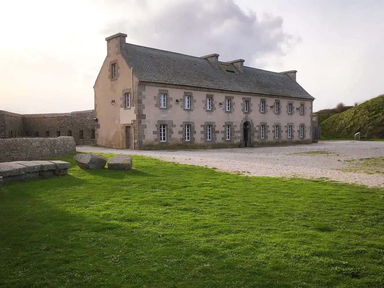 Débutée en 2018, la restauration du lazaret et de la caserne n°7, a essentiellement ciblé le clos-couvert et l’aménagement en lieu d’accueil de la maison des douaniers. Au regard des éléments anciens encore subsistants, les menuiseries et les sols ont pu majoritairement être conservés. Dans sa fonction réceptive, les abords ont aussi été considérés afin de créer des cheminements adaptés tout public. Pour la caserne n°7, les travaux de couvertures, façades, et menuiseries ont permis de retrouver un état proche de celui avant les bombardements de 1944. Le programme d’intervention a également concerné d’autres espaces non classés au cœur de l’ancien lazaret, l’atelier de ferronnerie et de serrurerie, aménagés en salles pédagogiques ; fruit d’une reconstruction suite à un sinistre incendie.